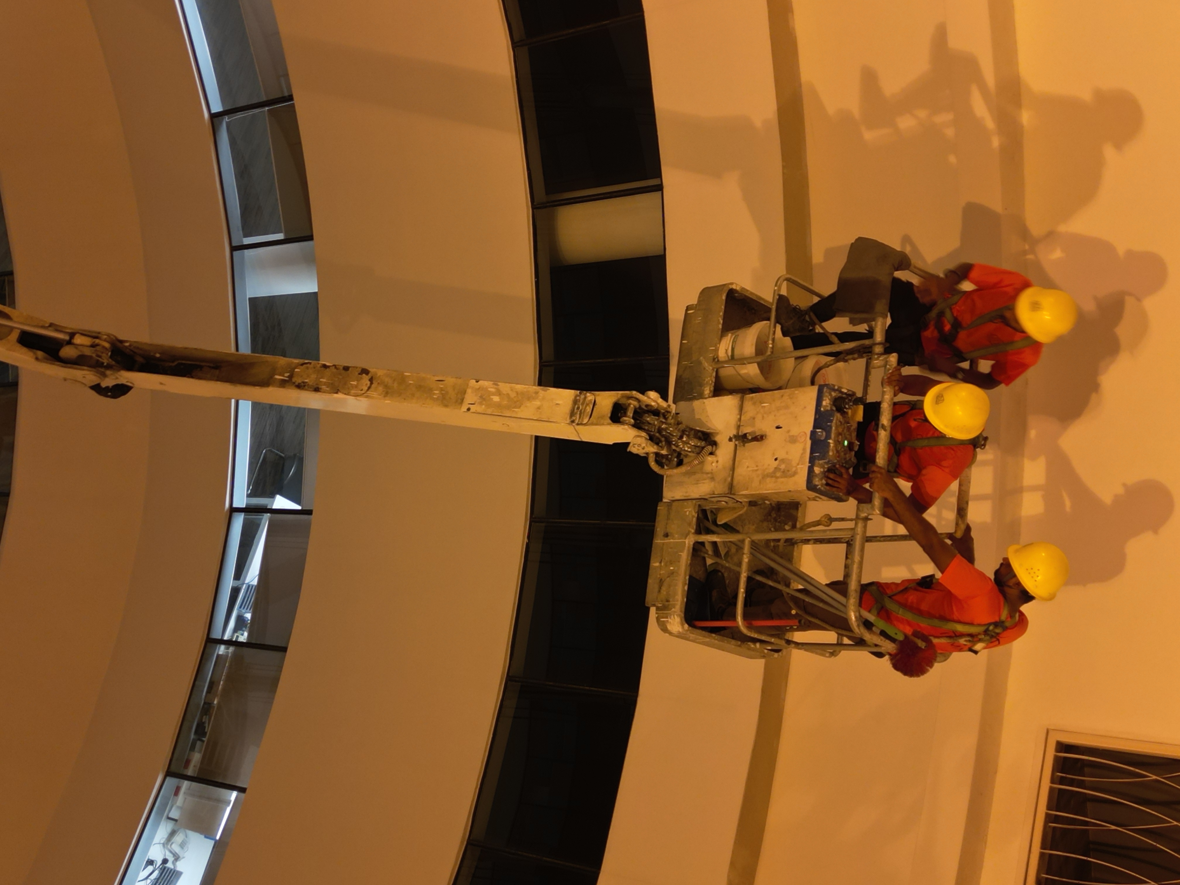 The scope of work involved the use of specialized non-streak cleaning agents and professional-grade interior access equipment, allowing safe and efficient servicing of glass partitions, internal façades, and elevated interior glazing. All cleaning processes were carried out with minimal disruption to daily operations while maintaining strict quality control.